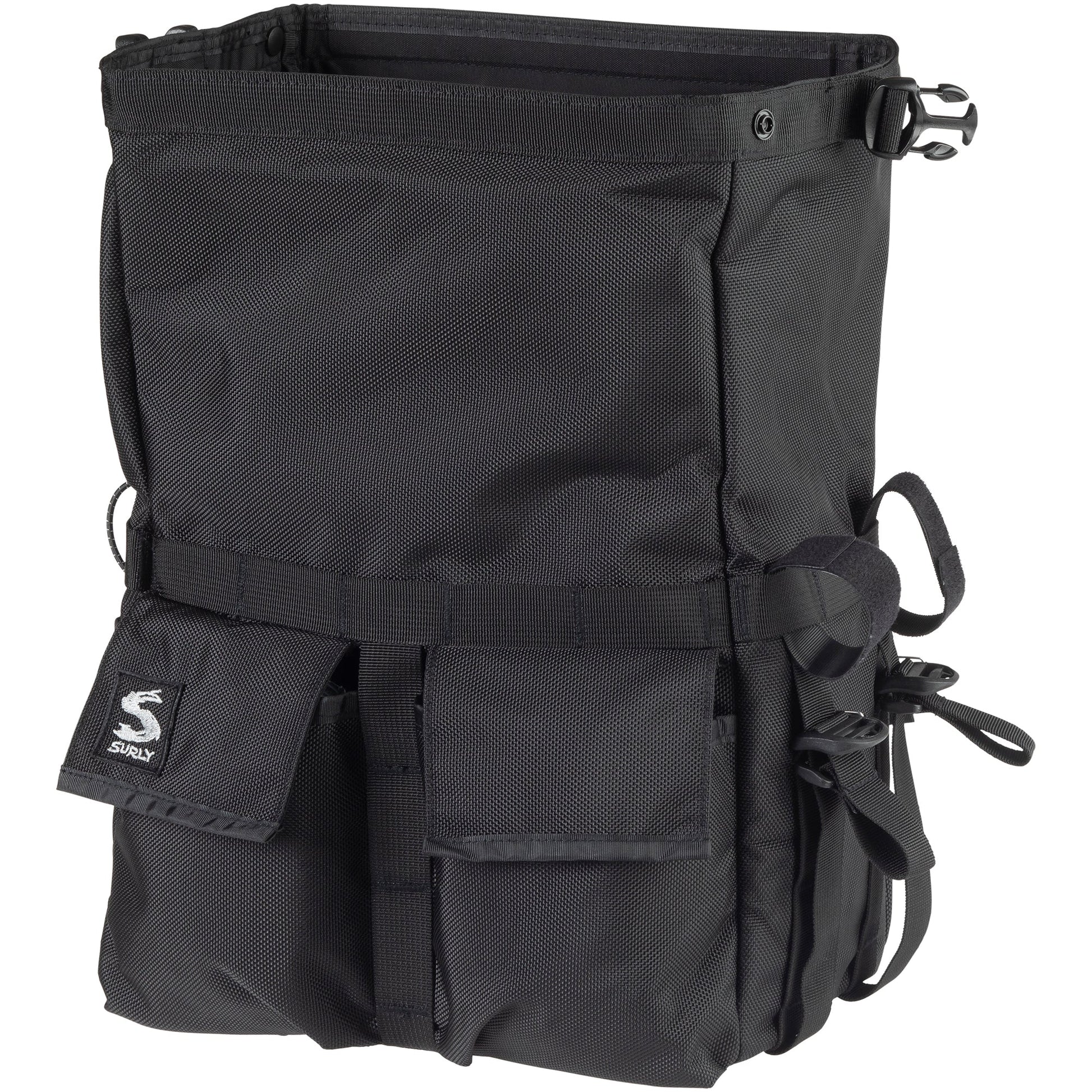 Cut from the rear end of the short loin just like its larger relative, the Petite Porteur House Bag is a commuting and light-camping combo platter loaded with outsized versatility. Secured with a simple system of three adjustable straps, it’s designed to pair with the Surly 8-Pack Rack and similar porteur-style front racks.